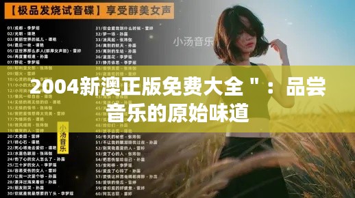 随着数字化时代的到来,音乐的传播形式和消费方式发生了翻天覆地的变化。在互联网的浪潮中,音乐的获取变得前所未有的便捷,但也随之带来了版权保护的挑战。为了保护音乐创作者的权益,同时让更多人能够享受到正版音乐的魅力,“2004新澳正版免费大全”项目应运而生。