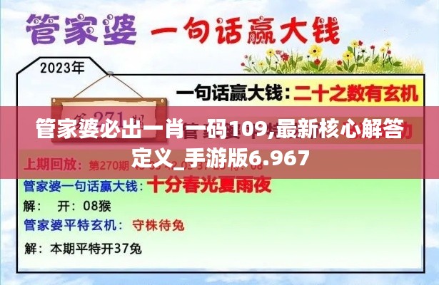 《管家婆必出一肖一码109,最新核心解答定义_手游版6.967》文件内容的主要涵盖了以下几个方面: