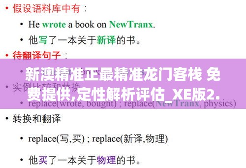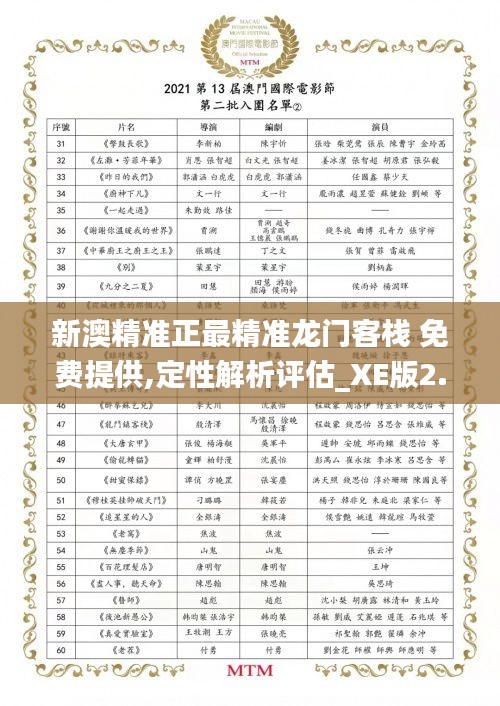 “新澳精准正最精准龙门客栈”是一个全面的、免费的公共服务平台,旨在为用户提供澳门特区最新、最准确的政策文件、法规制定和定性解析评估。“新澳精准正最精准”强调了平台的准确性和可靠性,同时也展示了我们提供高质量服务的决心。“龙门客栈”寓意着我们欢迎并服务于来自五湖四海的朋友,致力于成为澳门政策信息服务的“客栈”,为每一位寻求信息的用户提供免费的“住宿”。“免费提供”,更体现了我们为公众利益服务的初心。“定性解析评估”是“XE版2.649”的核心功能之一,使用户能够更深入地理解政策变化对他们的影响。