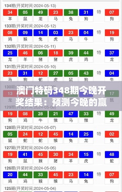根据历史数据和专家分析,我们可以预见今晚特码348期的开奖结果将会呈现一定的趋势。首先,我们需要关注几个热门号码。在前几期特码中,某些号码频繁出现,这可能意味着它们具有较高的中奖概率。
