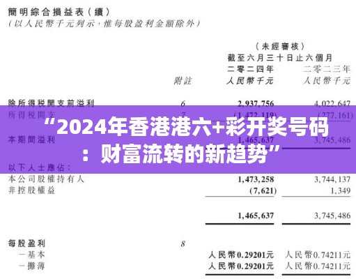 在快速变化的全球化时代,财富的流转和分配呈现出新的特点和趋势。尤其是在粤港澳大湾区的发展战略中,香港作为一个国际金融中心,其港六+彩的发展变化不仅体现了博彩业的繁荣,更是折射出财富流转的新动向。本文旨在探讨2024年香港港六+彩开奖号码的相关动态,并分析其对财富流转的深远影响。