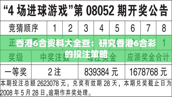 香港6合彩,作为香港最受欢迎的彩票游戏之一,吸引了大量玩家参与。本文旨在提供一个全面的香港6合彩资料大全,并深入研究投注策略,以帮助玩家更好地理解游戏规则和提高中奖机会。