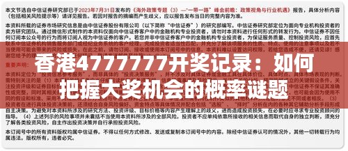 彩票,作为一项广泛流行的娱乐方式,一直是公众关注的热点。特别是在香港,以其独特的彩票文化和大奖的诱人魅力闻名遐迩。本文将通过分析香港4777777彩票的开奖记录,探讨如何通过概率论的方法增加中大奖的机会。