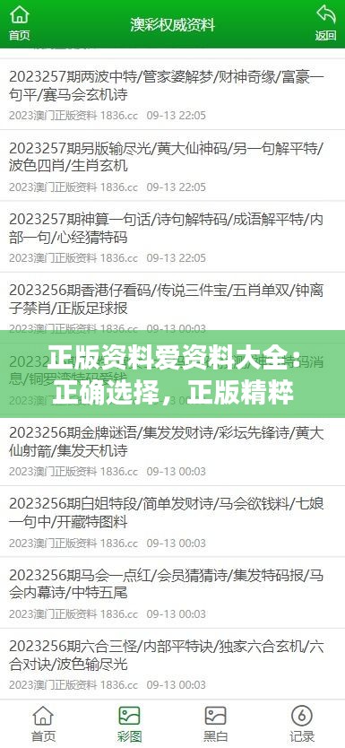 在信息时代,知识经济迅猛发展的今天,正版资料爱资料大全:正确选择,正版精粹显得愈发重要。正版资料不仅能确保信息的准确性和可靠性,还体现了对知识产权的尊重和保护。本文将探讨如何选择和识别正版资料,从而确保我们在学习和工作中能够获得最优质、最权威的信息资源。