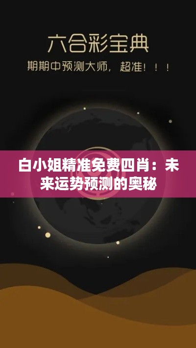 在中国传统文化中,生肖预测和运势占卜一直是一种深受人们喜爱的传统文化活动。而在众多的生肖运势预测中,“白小姐精准免费四肖”以其独到的精准度和免费的优势,成为了许多人心中预测未来运势的秘密武器。本文将带领您深入探索这一神秘领域的奥秘,让您对“白小姐精准免费四肖:未来运势预测”有一个全面而深入的了解。