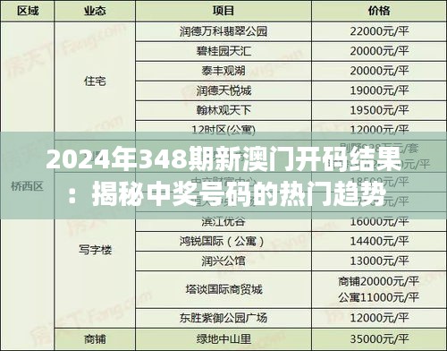 依据2024年348期新澳门开码结果及其趋势,我们亦结合了历史数据进行分析,力图为彩民朋友们提供更有价值的参考。