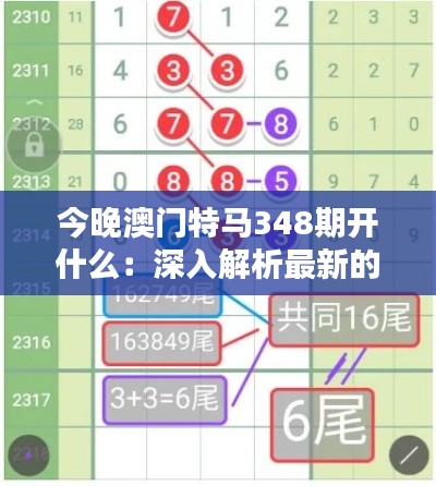 尊敬的马迷朋友们,今晚将是澳门特马348期的开奖之夜。作为彩票迷,我们总是对即将开奖的结果充满好奇和期待。本文将深入解析最新的马卦数据,为您提供全方位的投注信息。通过科学和客观的分析,我们希望为您的投注决策提供参考。