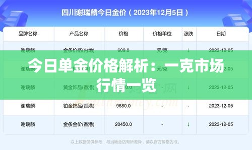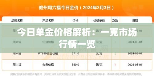 转载请注明来自武汉厨博士餐饮管理有限公司,本文标题:《今日单金价格解析:一克市场行情一览》