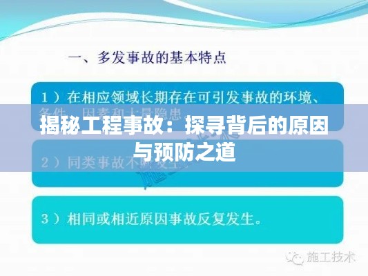 揭秘工程事故:探寻背后的原因与预防之道工程事故,无论是在建筑、交通、能源还是其他工程领域,都是我们不愿看到的现象,这些事故不仅造成了人员伤亡和财产损失,还对社会稳定和经济发展产生了严重影响,本文将深入剖析工程事故的常见原因,探寻背后的原因,并提出相应的预防措施。