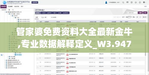 "管家婆免费资料大全最新金牛"作为一个信息化时代的产物,为用户决策提供了极大的便利。这一数据库覆盖了多个领域,包括金融、经济、科技等,并通过与"管家婆免费资料大全最新金牛,专业数据解释定义_W3.947"的结合,为用户提供了更加深入的数据理解与分析工具。