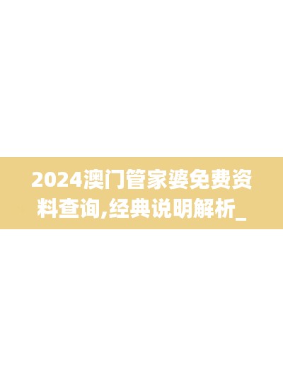 2024年澳门管家婆免费资料查询,经典说明解析_Device8.991。澳门是一个国际化的城市,澳门管家婆资料查询系统起着重要作用。本文将介绍澳门管家婆免费资料查询在Device 8.991上的经典说明和解析方法。我们将结合实际案例,让读者更好地理解Device 8.991在澳门管家婆免费资料查询中的核心作用和应用价值。