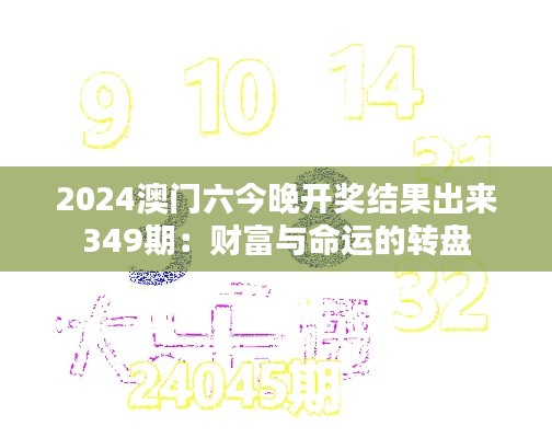 今晚,澳门彩民们翘首以待的一个重要时刻终于到来——2024澳门六今晚开奖结果出来349期开奖。这一期的开奖将成为众多彩民财富与命运的重要转盘,让我们一同关注和分析今晚的开奖结果。