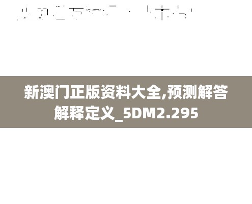 “新澳门正版资料大全,预测解答解释定义_5DM2.295”文件的发布,标志着澳门政策制定与执行的一个新里程碑。这份文件不仅涵盖了澳门经济、社会、文化等多个领域的最新政策,同时也对澳门未来发展进行了前瞻性预测与解答,为决策者、学者及公众提供了丰富的参考资料。