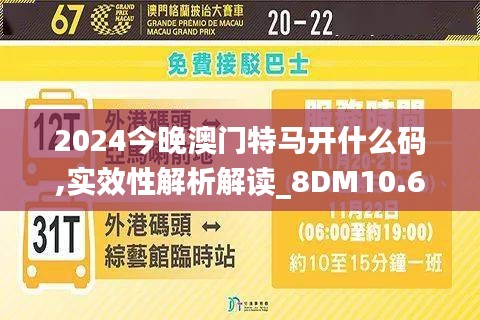 尊敬的读者朋友们,您正在阅读的文章是关于2024年澳门特区赛马会将于今晚举行的赛事相关码的实效性解析和解读。澳门作为远东的璀璨明珠,在娱乐博彩业的发展中独树一帜,赛马赛事更是其中不可或缺的一环。本文将带您深入了解今晚即将开出的赛马特码,为您提供专业的分析和见解。