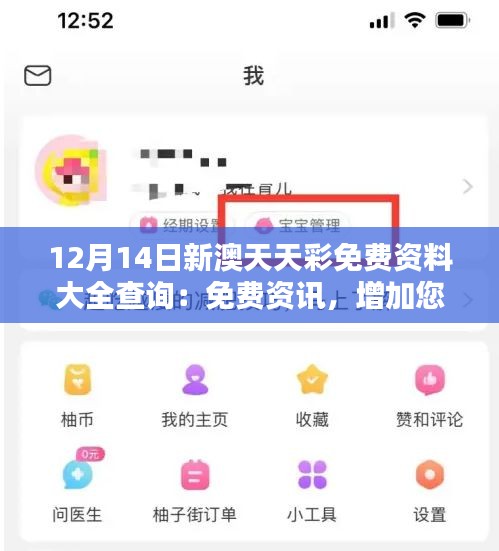 通过"12月14日新澳天天彩免费资料大全查询:免费资讯,增加您的财富机会",您可以更好地了解澳门彩票的投资环境、奖金分配情况以及如何购买澳门彩票等信息。让您的投资渠道更多,风险更低,财富增长的机会更大。