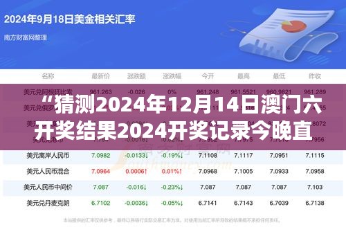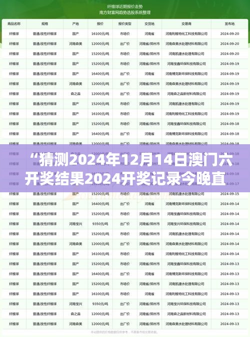 随着澳门博彩业的蓬勃发展,人们对每一次的“澳门六开奖”都充满期待。2024年12月14日,这一盛事再次吸引了全球的目光。在本文中,我们将深入探讨如何通过运气与策略的较量,来猜测2024年12月14日澳门六开奖的结果,并回顾历史上的开奖记录,同时直播今晚的开奖盛况。