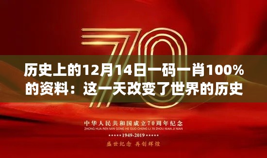 每年的12月14日,都被历史铭记,因为这一天世界历史上有几个重要的事件。在这篇文章中,我们将追溯这些重要历史时刻,探索它们是如何在不同程度上改变了世界的历史。这一天,一码一肖100%的正确性包含着历史的密集性和深度,让我们一起回顾并理解12月14日的重大事件和它们的影响。