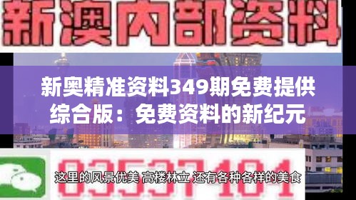 新奥精准资料349期免费提供综合版:标志着免费资料的新纪元,为澳门政策文件的传播和交流开辟了新的路径。在全球化和信息化的时代背景下,澳门政策文件的发布和管理变得尤为重要。新奥精准资料349期免费提供综合版,旨在通过免费提供的政策资料,加强信息资源的共享和利用,提高澳门政策文件的普及率和影响力。这一资料库的建立,不仅为广大用户提供了一个全新的政策资讯获取途径,也为澳门政策文件的传播和管理注入了新的活力。