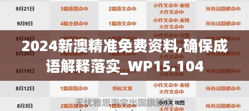 “2024新澳精准免费资料,确保成语解释落实_WP15.104”的主要目标是: 1. 提供精准的成语资料,确保每一成语及其解释的准确性和权威性。 2. 提供免费的成语学习资源,降低语言学习的经济门槛。 3. 确保成语解释落实到日常生活和教育中,提高成语的使用频率和普及率。 4. 加强澳门与内地、海外华人社区的文化联系,促进文化认同感和凝聚力。