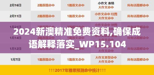 随着全球化的快速发展和文化多样性的日益彰显,“2024新澳精准免费资料,确保成语解释落实_WP15.104”这一项目应运而生。在这个信息爆炸的时代,准确的信息传递和文化底蕴的传承显得尤为重要。澳门特别行政区以其独特的地理位置和文化背景,成为了这个项目的重要实践地。本文旨在详细介绍该项目的目的、内容和实施步骤,以期增强读者对“2024新澳精准免费资料,确保成语解释落实_WP15.104”的了解和兴趣。