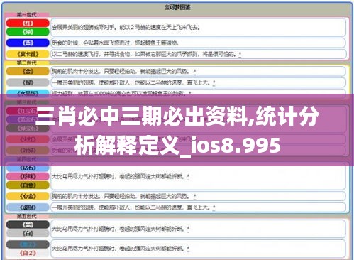 "统计分析解释定义_ios8.995"这一部分强调了iOS8.995系统在“三肖必中三期必出资料”处理中的核心作用。iOS8.995提供了一系列工具和应用程序,允许用户轻松地分析和解释统计数据。这些工具包括高效的数据处理算法、可视化软件包以及实时更新的统计模型。