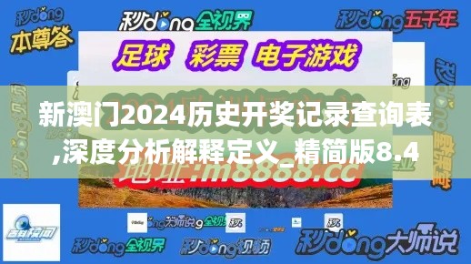 澳门,这个位于中国南部的特别行政区,以其繁华的娱乐业和博彩业闻名于世。随着“新澳门2024”计划的实施,澳门的博彩行业迎来了新一轮的发展机遇。为了更好地理解和把握澳门博彩行业的发展趋势,我们特此发布《新澳门2024历史开奖记录查询表,深度分析解释定义_精简版8.479》,旨在通过历史开奖记录的数据分析,为相关人士提供专业的解读和指导。