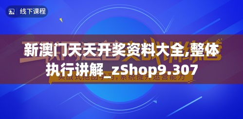 综上所述,“新澳门天天开奖资料大全,整体执行讲解_zShop9.307”是澳门政府对彩票行业的全面规范和管理。通过此政策文件的实施,澳门的彩票市场将更加稳定、公正、透明,为所有参与者提供一个值得信赖的平台。