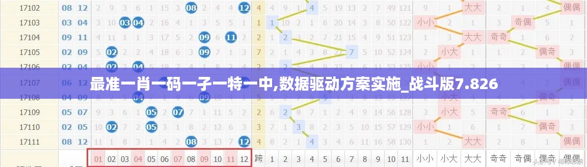 战斗版7.826中的“最准一肖一码一孑一特一中”,包含了以下几个元素: "最准"代表了对数据分析结果高度精确的追求;"一肖"对应着数据的实时性,强调对数据时间价值的把握;"一码"指的是生成唯一数据标识符,快速识别信息;"一孑"代表数据清洗,保证数据的质量;"一特"强调数据的特别性,提供定制化的数据方案;"一中"则是全体数据整合完毕后的体现,即数据整合的最终结果。
