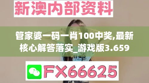 在过去的几年里,随着科技的快速发展和游戏产业的不断进步,澳门这一国际级别的博彩中心如明珠般耀眼。最近,一款名为"管家婆一码一肖100中奖,最新核心解答落实_游戏版3.659"(以下简称“3.659”)的新游戏引起了广泛关注。这篇文章将为您提供有关“管家婆一码一肖100中奖,最新核心解答落实_游戏版3.659”的详细介绍,帮助您更好地理解这款独特且引人入胜的游戏。