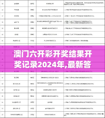 尊敬的读者们,您好!感谢您关注我们的澳门六开彩专栏。作为澳门特区的重要政策项目之一,澳门六开彩一直以其高透明度和公平公正性得到广泛关注。今天我们将为您详细解析澳门六开彩开奖结果开奖记录2024年,以及最新的答案解释落实方案,让您对澳门六开彩有更好的理解和兴趣,同时也将为您提供专业款14.101的相关政策解读。