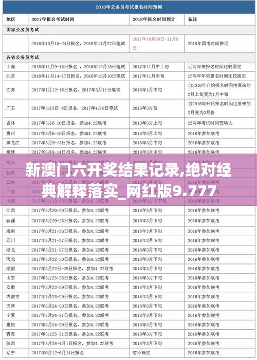 所谓“绝对经典解释落实”,是指新澳门六开奖结果记录不仅具备特性,而且全面深入地对开奖结果进行了记录和解释,其信息的准确性和全面性是业界公认的。在澳门彩票市场中,“网红版9.777”代表了新澳门六开奖结果记录的最高水平,如同彩票领域的“网红”一样,成为了一个热门话题。新澳门六开奖结果记录以其精湛的数据记录和经典解释赢得了用户的信赖。