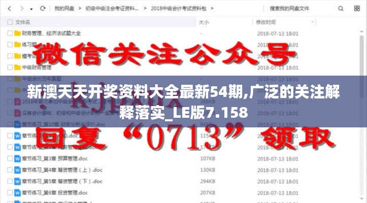 随着彩票业的蓬勃发展,"新澳天天开奖资料大全最新54期,广泛的关注解释落实_LE版7.158"已经受到了社会各界的广泛关注。其中,"广泛的关注"指的就是社会各界,包括普通民众、商家、研究机构等,对这个文件的关注和研究。而"解释落实"则是指对于文件内容的详细解释和实际运用。