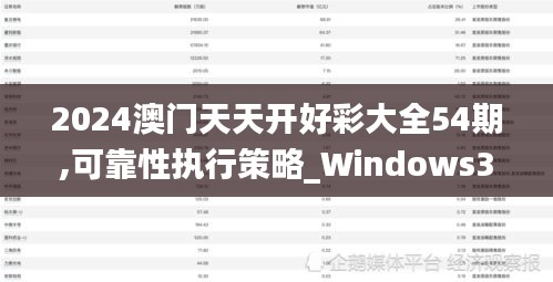 “2024澳门天天开好彩大全54期,可靠性执行策略_Windows3.898”的实施将带来一系列的积极效果:
