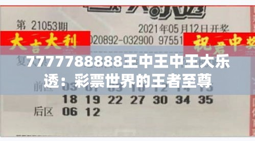 在澳门特区的政策文件中,我们欣喜地看到彩票业的发展被提上日程。“7777788888王中王中王大乐透”作为彩票世界的王者至尊,在众多彩票项目中脱颖而出。彩票文化的深远影响力,以及对经济和社会的积极作用,让“7777788888王中王中王大乐透”责无旁贷地成为彩票业的新宠。