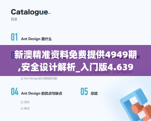 “新澳精准资料免费提供4949期,安全设计解析_入门版4.639”中的“入门版4.639”旨在为初次接触安全设计解析的读者提供一个简易且全面的理解框架。这一版本涵盖了基本的安全设计理念、政策文件解读、以及实际操作的入门知识。通过简化术语和举例说明,降低了理解和学习的门槛。无论是新手还是专业人士,皆能通过这一入门资料,快速掌握有关政策文件和安全设计的精髓。