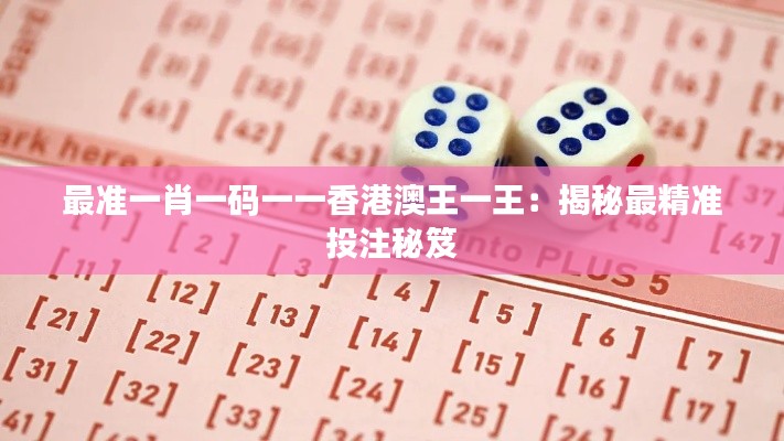 "最准一肖一码一一香港澳王一王:揭秘最精准投注秘笈",不仅是一句口号,而是一种立于不败之地的投资哲学。如果您也想成为澳门博彩游戏中的大赢家,那么学习和掌握这样的投注知识将是不可或缺的。只有深刻理解投注的科学原理,并结合自身的实际能力,才能在澳门这个充满机遇和挑战的领域取得更好的成绩。