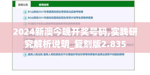 随着2024年澳门博彩业的蓬勃发展,众多玩家对于澳门彩票的热情日益高涨。在这种大背景下,“2024新澳今晚开奖号码,实践研究解析说明_复刻版2.835”这一概念应运而生,旨在为彩票爱好者提供一个全新的视角和深入的解析。本文将详细介绍该复刻版的相关信息,增强读者对“2024新澳今晚开奖号码,实践研究解析说明_复刻版2.835”的了解和兴趣。