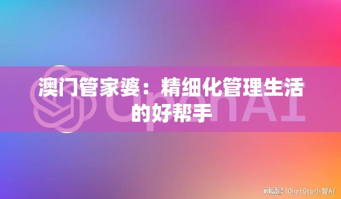 “澳门管家婆:精细化管理生活的好帮手”彰显了澳门在新的历史时代下,对现代化管理的追求和探索。