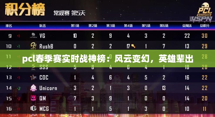 pcl春季赛实时战神榜:风云变幻,英雄辈出