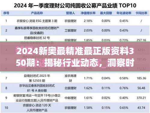 在信息爆炸的时代,及时了解最新的行业动态和时代变革显得尤为重要。“2024新奥最精准最正版资料350期”作为一份超前的战略性数据报告,揭秘了多个领域的最新走势和预测,对于在澳人士把握未来发展趋势,扮演着引领者的角色。以下是对“2024新奥最精准最正版资料350期”的详细介绍,探索资料背后的深刻意义和潜在价值。