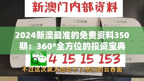 《2024新澳最准的免费资料350期:360°全方位的投资宝典》是投资者了解澳门经济的新窗口。我们相信,通过这份资料,您可以更加全面和深入地理解澳门的投资环境,把握未来的投资机遇。