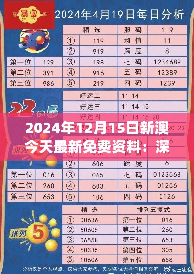在这个信息爆炸的时代,获取深度解析市场动态与投资趋势的最新免费资料变得尤为重要。今天,我们特别为您提供了一份深度解析资料,对于2024年12月15日新澳的市场动态与投资趋势进行了全面的分析。这份2024年12月15日新澳今天最新免费资料旨在为您提供第一手的市场资讯和深度分析,帮助您更好地洞察和把握市场脉搏。