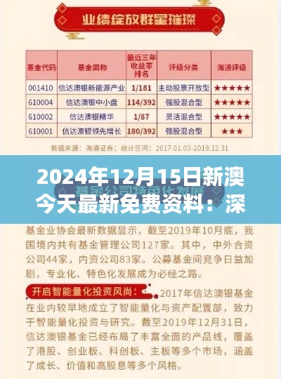 通过对2024年12月15日新澳今天最新免费资料的整理和分析,我们发现市场正呈现出复杂多变的特点。在全球经济一体化和数字化转型的大背景下,理解市场动态和投资趋势显得尤为重要。