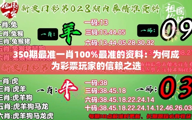 欢迎来到这篇专题文章,即"350期最准一肖100%最准的资料:为何成为彩票玩家的信赖之选"。今天,我们将深入探讨这一彩票资料如何凭借其准确性和可靠性,赢得了广泛的赞誉和信任。