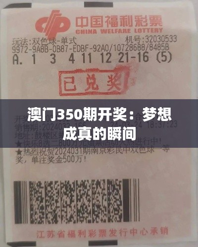 澳门,这个东方的拉斯维加斯,以其独特的魅力和络绎不绝的访客而闻名。作为亚洲主要的娱乐中心之一,澳门不仅以其豪华的赌场和酒店吸引着世界的目光,还因其多彩的城市文化、历史景观和一年一度的盛大赛事而备受瞩目。其中,澳门350期开奖,就以其独特的魅力吸引着无数彩票爱好者的目光。这篇文章将带您走进澳门350期开奖:梦想成真的瞬间,让读者深入了解这一非凡的开奖活动,并点燃心中的激情和梦想。