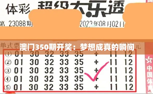 澳门350期开奖不仅仅是一场彩票活动,它还是一个关于梦想和奋斗的故事。每一张彩票,都承载着一个人的梦想;每一次开奖,都上演着梦想成真的瞬间。
