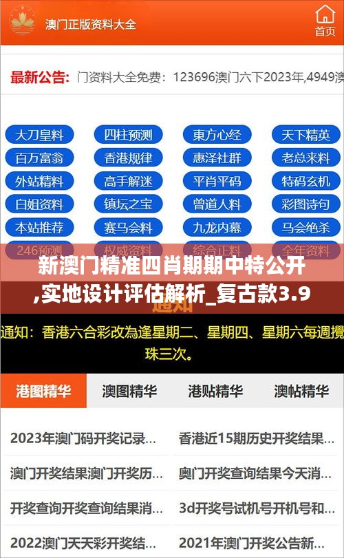 澳门地区的独特地理位置和丰富的文化遗产使其成为了一个备受瞩目的国际都市。近年来,随着区域政策的不断更新和城市发展目标的深化调整,新的澳门精准四肖期期中特公开(以下简称“新澳门四肖”)的概念应运而生。此政策旨在通过精确的规划和科学管理,为澳门的可持续发展注入新活力。本文将以“新澳门精准四肖期期中特公开,实地设计评估解析_复古款3.911”为题,对这一政策文件进行详细的解析。