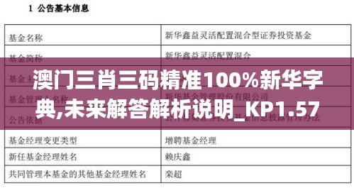“三肖三码”作为一个专有名词,指的是在澳门博彩业中关于投注、结果显现的模型,并与“新华字典”紧密联系。这意味着在澳门,所有的博彩项目都应遵循这样的标准,即确保结果的公正性、公平性。“澳门三肖三码精准100%”意味着在这个标准指导下的结果,在准确性与合理性上达到了100%的确认,展现出澳门对于博彩业务稳健管理的决心和对规则的严谨性。