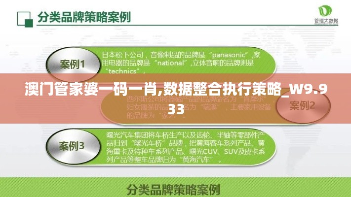 随着数字经济的蓬勃发展,澳门特别行政区一直在积极探索高效的政务管理和服务创新模式。为此,我们特别制定了“澳门管家婆一码一肖,数据整合执行策略_W9.933”,旨在通过数据整合与智能化管理,提升澳门特区的治理能力。该策略将深入挖掘一码一肖政策的潜力,加强数据工作的全面性、准确性和关联性,确保政策执行的高效性和有效性。