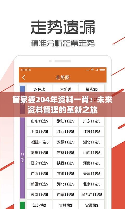 在这个信息爆炸的时代,我们每天都在产生和处理大量的数据。面对日益增长的数据量,传统的资料管理已经显得力不从心。在这样的背景下,“管家婆204年资料一肖:未来资料管理的革新之旅”应运而生,它代表了资料管理领域的一次革命性变革。这篇文章旨在探讨“管家婆204年资料一肖:未来资料管理的革新之旅”的重要性和优势,以及其在澳门政策文件发布的应用前景。